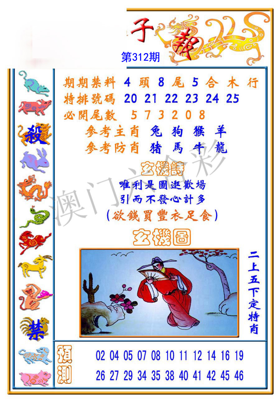 | 311期:必中五肖: 蛇虎牛龙猪 |