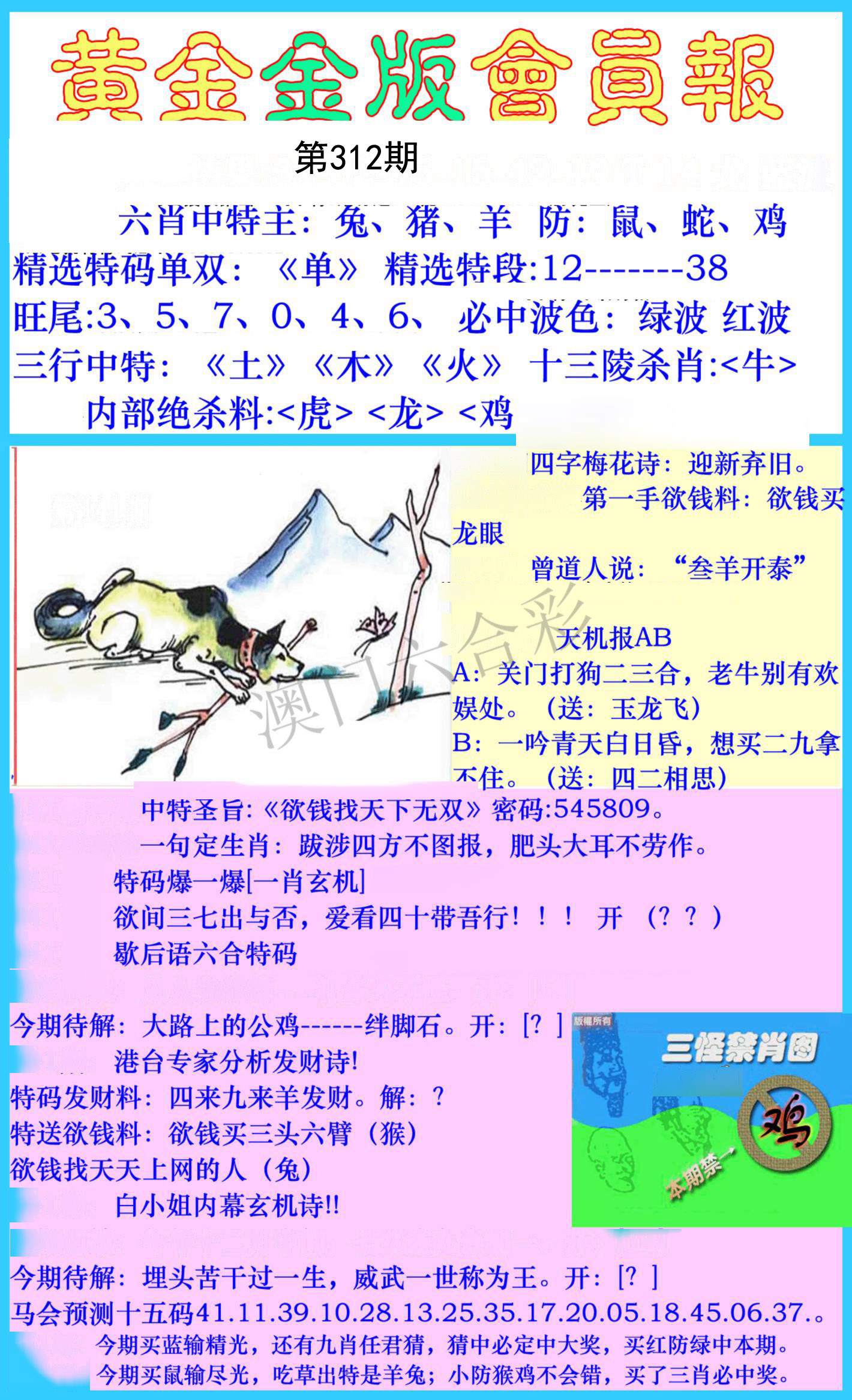 | 312期:必中五肖: 鸡龙猪马鼠 |