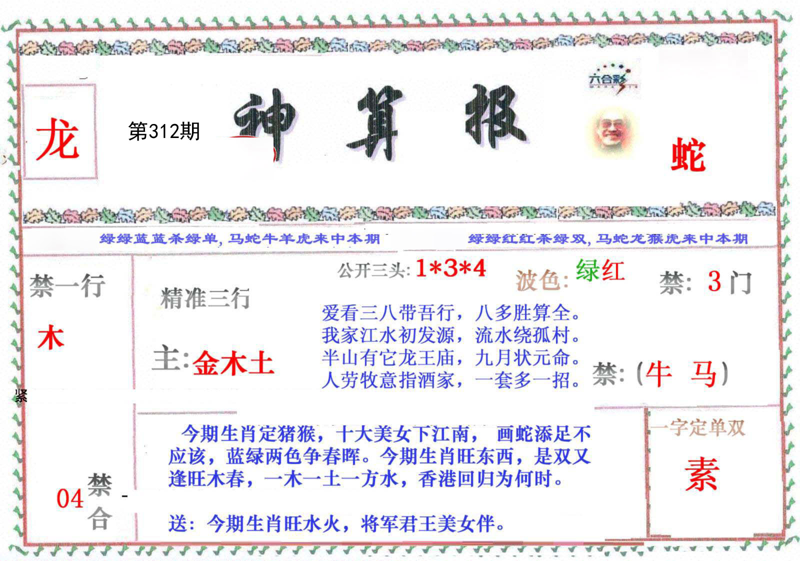 | 312期:六肖中特(鼠牛虎蛇龙鸡)开?00 |
